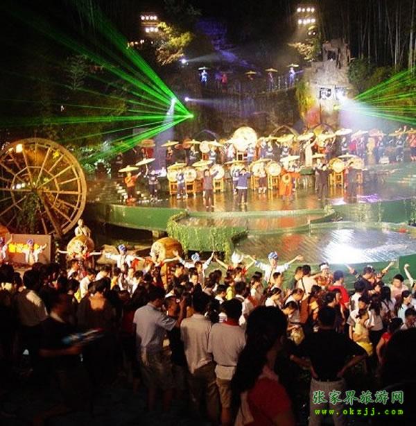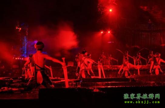 The Ancient Mystical Legend of zhangjiajie 《武陵魂•梯瑪神歌》是一場記述土家族起源、演變、戰(zhàn)爭、生產(chǎn)生活等內(nèi)容的大型立體山水實景演出,揉合了音樂、舞蹈、文學等多種藝術(shù)形式,如幻如夢的舞美燈光,搖曳生姿的原生態(tài)歌舞……濃縮了土家族數(shù)千年的發(fā)展歷史,400多名演員以自然淳樸的表演充分的展示了土家的民族文化特征,給游客帶來了耳目一新的感受。一場視聽的饕餮盛宴,一曲驚天地、泣鬼神的曠世古歌,給人山水文化光影視聽的享受?!境銎罚?a class="insidelink" target="_blank" title="張家界">張家界梯瑪神歌文化傳播有限公司】 Time come from language of China′s Tujia nationality, it means god-worshipers when offering sacrifices to their gods. The songs are a combination of various art forms, such as music, dance and literature. Sumptuous lightings, smooth dances, long-lost sacrifice ceremonies, mysteries high-pitched spell, among others create a real sensation.