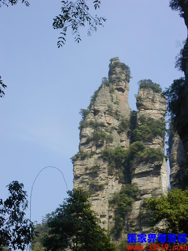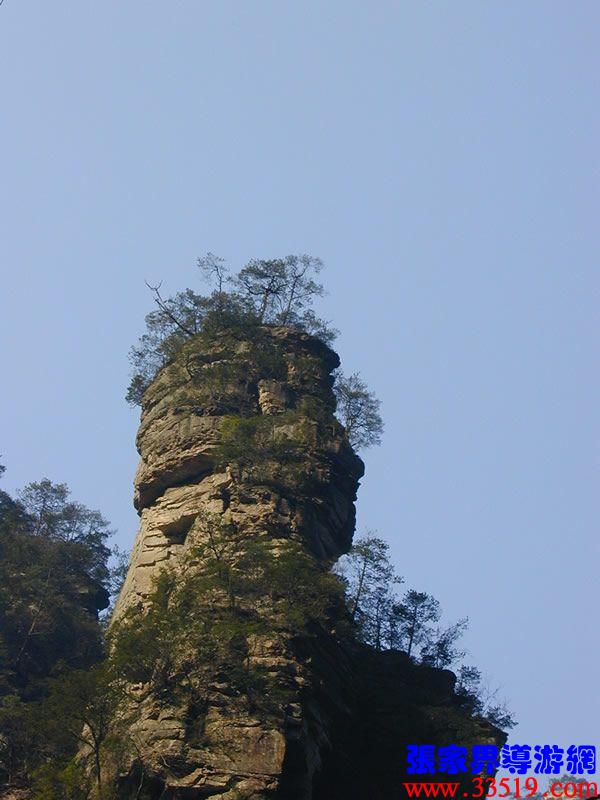 (花果山、水簾洞)孫悟空的花果山水簾洞到了。并不是張家界人過于牽強,胡亂把西游記的事兒往這兒湊,實在是巧合,《西游記》劇組的導(dǎo)游楊潔及唐僧、豬八戒、孫猴子、沙和尚等飾演者,一見到這地方就十分肯定地說:外景地選遍全國,只有張家界才真正是《西游記》筆下的神仙妖魔世界。大家順著我的指向往前看,左前方是帶著僧帽,披著袈裟,嘴中念念有詞的唐僧,緊跟在他后面的那座黑乎乎的石峰當然就是沙和尚了;神通廣大的孫猴子半蹲在唐僧后側(cè)手搭涼篷,正在觀察敵情呢;豬八戒哪去了?不用說,不是貪吃貪睡,就是偷偷找小女子搭訕去了,花心去了。