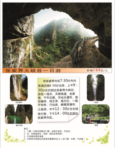 線(xiàn)路編號(hào):30816張家界大峽谷一日游