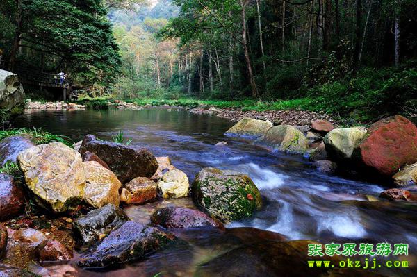 張家界是我國第一個(gè)國家森林公園,境內(nèi)奇山異水、奇花異木、奇禽異獸,奇絕天下。登黃石寨而小武陵,其山、石、云、霧、松,號(hào)稱“六奇”。金鞭溪?jiǎng)t峽長谷幽,溪水清澈。