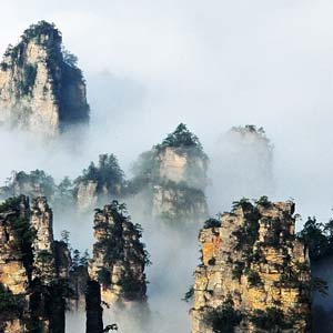 第三天   游世界峰林奇觀:天子山、仙女獻(xiàn)花、御筆峰、賀龍公園、十里畫廊等,住武陵源索溪峪