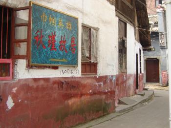 秋瑾故居位于湘潭市十八總由義巷。這位近代史上杰出的巾國英雄、婦女解放運動的先驅,在這里度過了8個春秋。離大碼頭不遠處有一條寬敞的小巷叫由義巷,巷兩旁墻高院深,大多是官紳富商之家,也開設了幾家當鋪、錢莊。進巷口十多丈遠處,有一棟青磚青瓦麻石門樓的鋪面,大門上首有一塊漢白玉石刻招牌“義源當”,這是湘潭有名的義源當鋪。