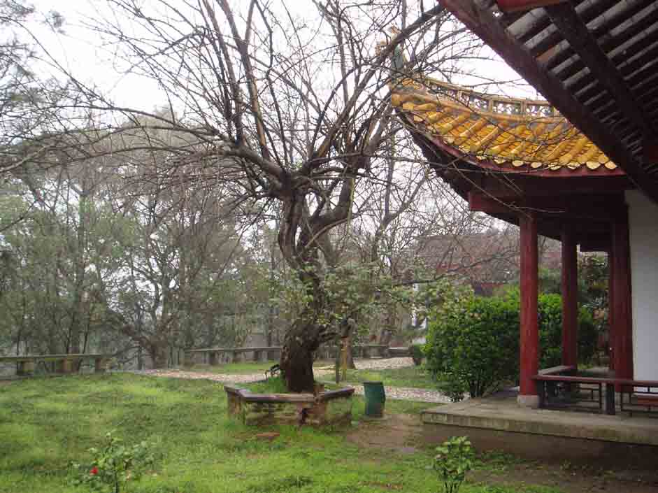 相傳四千多年前,舜帝南巡,兩個受妃娥皇、女英隨之趕來,船被大風(fēng)阻于君山,二妃突然聽到舜帝已死于蒼梧,悲痛欲絕,望著茫茫的湖水,攀竹痛哭淚水灑遍了山上的竹林,遂成斑竹,不久,二妃憂郁成疾,死于洞庭湖,葬于山之東麓,為紀(jì)念二妃而改洞庭山為君山,現(xiàn)是1979年岳陽市政府按(清)彭玉麟重修的墓樣維修的。墓為石砌,前立石柱,上雕麒麟 、雄獅、大象、中堅、“虞帝二紀(jì)之墓”墓碑。墓前10米處有一對石引柱,上有一副楷書石刻對聯(lián):“君妃二魄芳千古,山竹諸斑淚一人”。