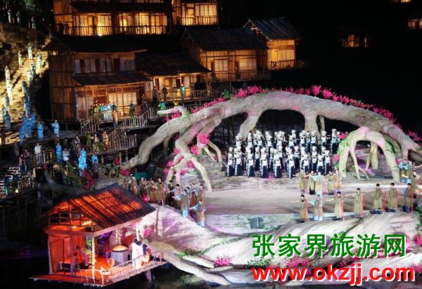 通過(guò)音樂、歌舞、魔術(shù)、雜技、影像等表演形式,融入湘西民族特色,演繹一出古老的傳奇愛情故事和奉獻(xiàn)魔幻視覺盛宴。