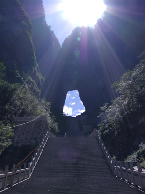洞,這一大自然的造物杰作,嵌于千米絕壁之上,如明鏡高懸,似天門獨啟,一年四季吐納云霧雷電,充滿著天宮帝閣的神秘感,其真正的形成原因至今還沒有令人信服的科學解釋.