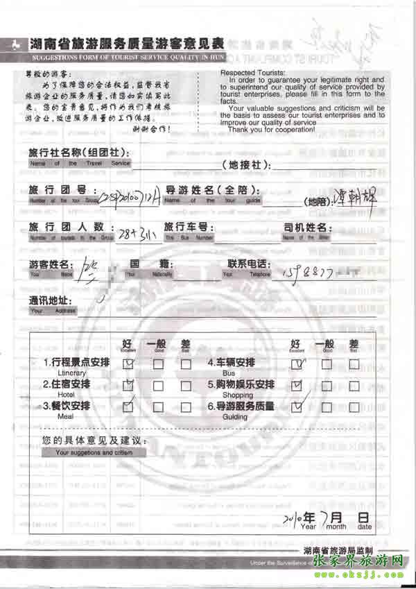 2010年7月12日竺先生旅游質(zhì)量反饋