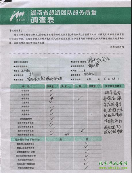 2011年6月13日鄭先生一行18人旅游質(zhì)量反饋:導(dǎo)游服務(wù)態(tài)度好,行程活動(dòng)組織精彩