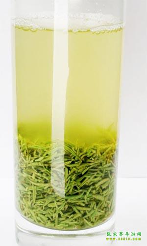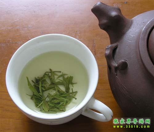 武陵源風(fēng)景區(qū)盛產(chǎn)香茶,著名的有“青巖茗翠”、“龍蝦花茶”、“黃石寨云霧茶”、“天崇毛尖”與“索溪毛尖”等。通過1982年評比,“青巖茗翠”獲部級金杯獎,同年又獲全國首屆食品博覽會銀獎。“龍蝦花茶”也已列入全國名茶。人們經(jīng)過品嘗、評比,并經(jīng)茶葉專家鑒定,一致認(rèn)為“青巖茗翠”、“龍蝦花茶”等具有外形美觀,內(nèi)質(zhì)優(yōu)良等特點。這種茶葉,從外形來看,條索緊結(jié),圓渾彎曲,苗鋒顯露,銀毫滿披,色澤翠綠,從內(nèi)質(zhì)來看,清香馥郁,味醇回甘,湯色綠明,葉底均勻,飲后爽神,具有熟板栗蘭花之奇香,飲后回味無窮。據(jù)考證,“青巖茗翠”屬高山云霧茶一類。自古道:“高山出好水,云霧育佳茶”。黃石寨枇杷界海拔1000多米,氣候溫和,云霧繚繞,溫度適宜,因而,茶葉嫩度高,品質(zhì)好。這種獨特的環(huán)境為茶葉中的氨基酸,咖啡堿等有效成分的形成和增長,提供了優(yōu)越的生長條件,而對質(zhì)地粗老的纖維素的形成,則又起到了抑制作用。還有,這些山峰上日照短,直射光少,漫射光多,晝夜溫差大,土質(zhì)的有機(jī)質(zhì)豐富,因而結(jié)構(gòu)疏松,排水又好。一切這些因素,都為茶葉的平穩(wěn)生長創(chuàng)造了良好的條件。所以“青巖茗翠”茶,就博得了各地名家的一致好評。湖南省茶葉學(xué)會秘書長、湖南農(nóng)學(xué)院副教授朱先明品了這種茶以后,賦詩贊美: