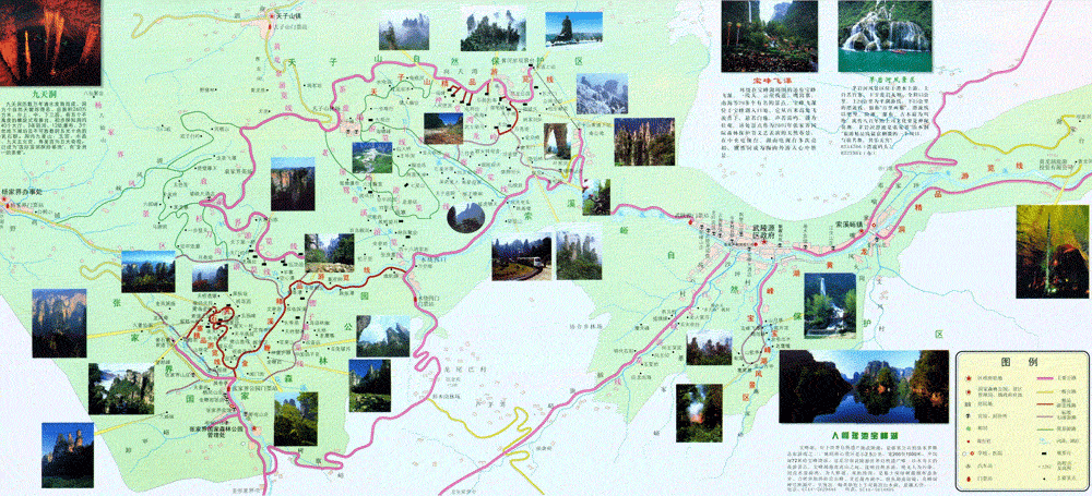 張家界國家森林公園位于武陵源的西南端,與索溪峪自然風(fēng)景區(qū)、天子山自然風(fēng)景區(qū)妣鄰,總面積7.2萬畝,年平均氣溫16度,森林覆蓋率為97%,木本植物達98科517種之多,比整個歐洲的樹種多一倍,裸子植物物種占世界一半。張家界國家森林公園以峰稱奇、以水顯幽、以林見秀,主要景點有金鞭溪、黃獅寨等。境內(nèi)群峰拔地而起如巨筍傲指蒼穹,金鞭溪夾岸斷巖絕壁,野滕古樹、好一派原始風(fēng)采,溪水如條條彩帶鋪展于千山萬壑之間。